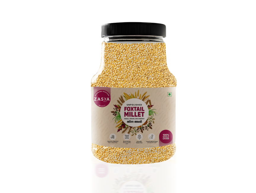Zasya Organics Foxtail Millet is a light, gluten-free supergrain packed with fiber, protein, and essential minerals. Known for its low glycemic index, it supports weight management, heart health, and digestion. Perfect for upma, pongal, or salads — it’s a smart and wholesome choice for everyday cooking.